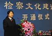 胡尹庐(最高人民检察院政治部副主任):各位领导、同志们:高检院门户网站“检察文化建设网”开通仪式现在开始。出席今天开通仪式的领导和嘉宾有:高检院党组成员、政治部主任李如林同志;办公厅副主任张红生同志;政治部常务副主任王少峰同志;检察技术信息研究中心主任赵扬同志;检察日报社党委书记、社长李雪慧同志。让我们以热烈的掌声欢迎各位领导和嘉宾的到来!